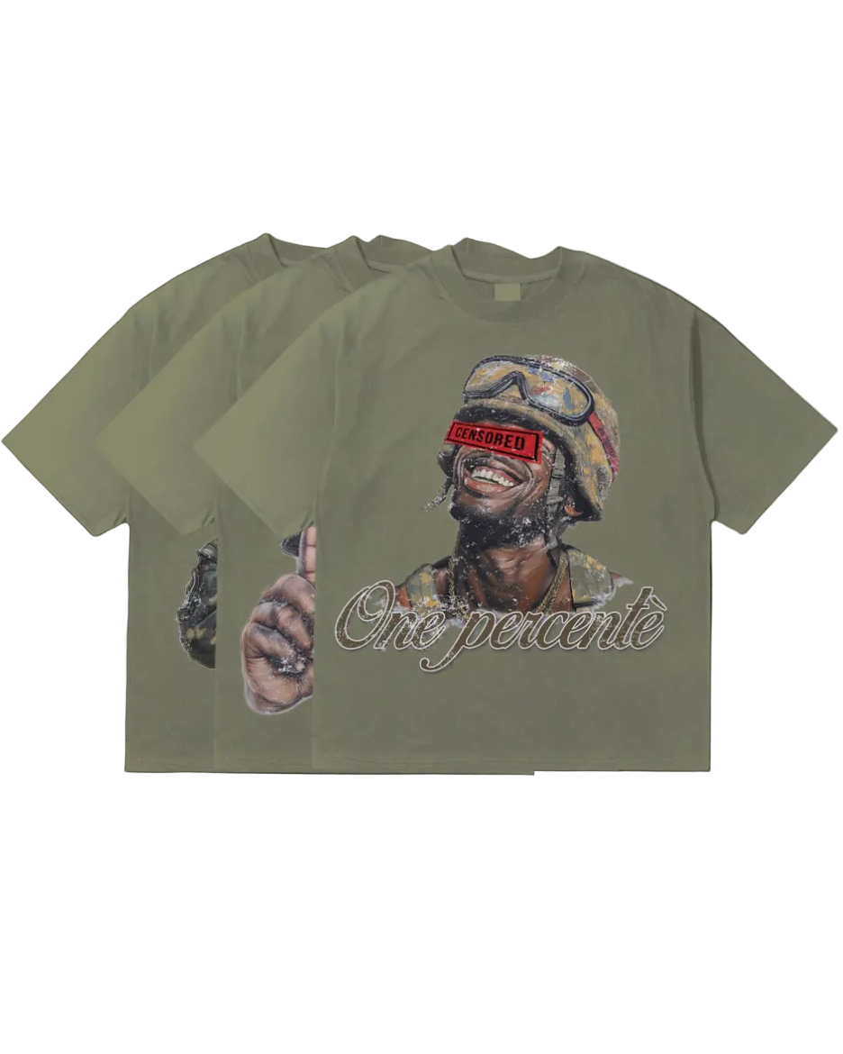 Boldly expressive and artistically raw, ‘The Soldier’ tee from One Percentè captures resilience, humor, and rebellion in a single iconic design. Made from heavyweight 230 GSM premium cotton for a substantial, luxe feel, this shirt is tailored in an oversized fit for maximum comfort and statement appeal. Featuring a powerful screen-printed graphic with a signature “CENSORED” bar and custom script logo, it’s a standout piece for any wardrobe.