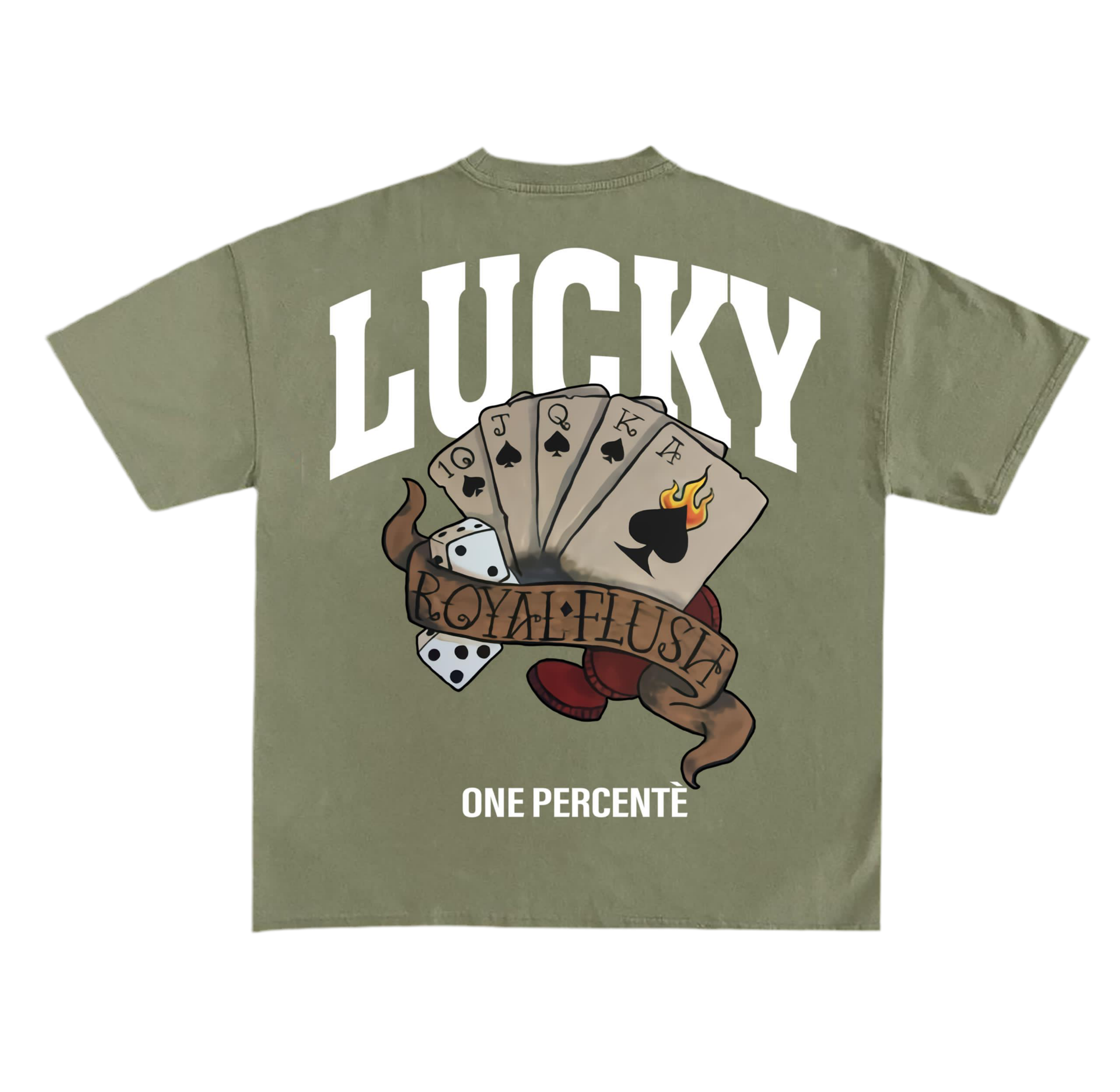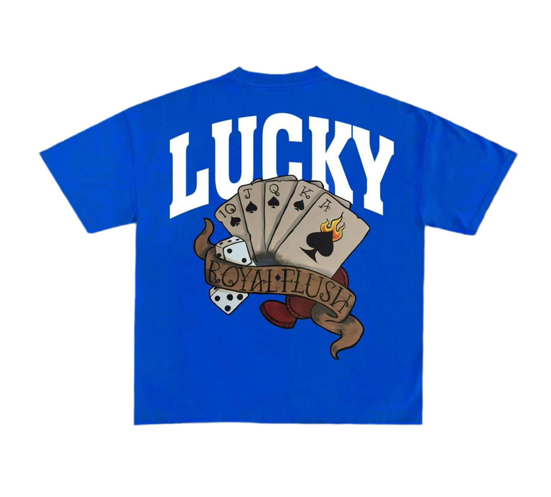 "Command the table—or the streets—with our Royal Flush collection. This premium heavyweight tee features a bold playing-card graphic, blending vintage casino elegance with modern streetwear edge. Crafted from 80% cotton / 20% polyester for structured comfort, it’s the perfect statement piece for those who bet on themselves."